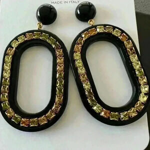 These statement-making earrings are embellished with colorful, recycled glass crystals, and are guaranteed to put the "!" on any outfit. Feel-good fact: This style was made using eco-friendly recycled brass casting. Want to keep your jewelry looking like new? We recommend removing it before showering or exercise, and putting it on after applying hair products or perfume. To clean your pieces, polish them with a soft, dry cloth - and when not wearing, store them in a pouch or jewelry case.