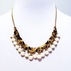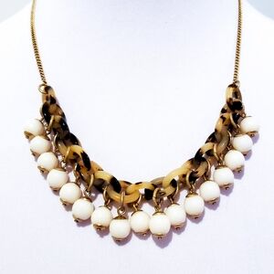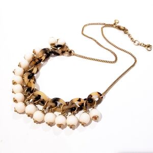 J. Crew Statement Necklace. Faux tortoise shell and round white beads. Quality J. Crew brass. Versatile: adjustable length. 22 inches in length, including 2 inch chain extender. Wear as a statement piece or layer with other necklaces. Good condition, with minor wear on the chain; see pics. All links and beads are intact. Boho luxe hippie casual career office everyday jewelry bohemian festival sweater necklace layer necklace wedding bridal bride bridesmaid brides. All photos 📷 were taken by me and are of the actual item. J.Crew jcrew j.crew J.CREW J. CREW