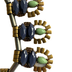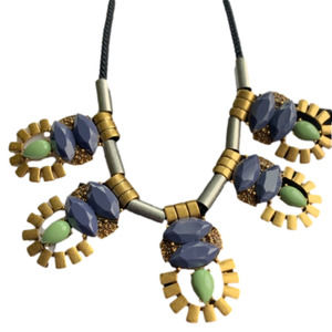J Crew statement necklace. NWTs . Blue-gray & green beads with silver & brass accents on black cord. Approx 19” length. Excellent condition