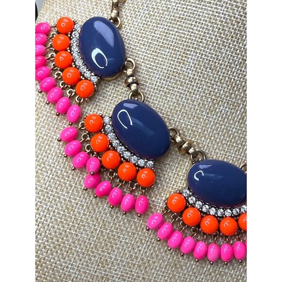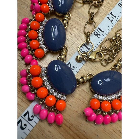 J. Crew Statement Necklace With Gold Chain Blue Stones Orange & Pink Beads Rhine