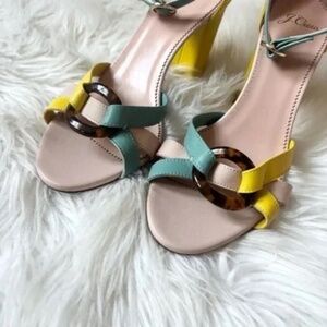J. Crew Stella Color-Block Leather Tortoise Buckle Heels 8.5