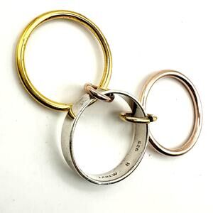 J Crew Sterling Silver 925 Ring Size 8 Stamped Mixed Metal Trio Set Interlocking