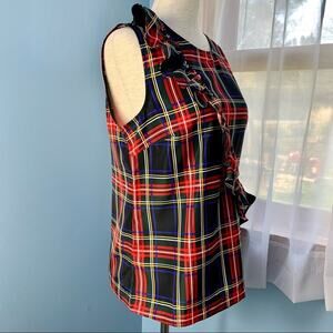J. Crew Stewart Plaid Ruffle Front Sleeveless Top