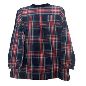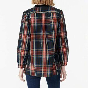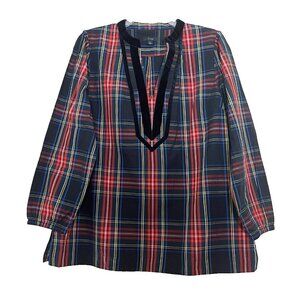 J. Crew Stewart Plaid Tartan Tunic Top Blouse Shirt XL Black Velvet Trim Holiday
