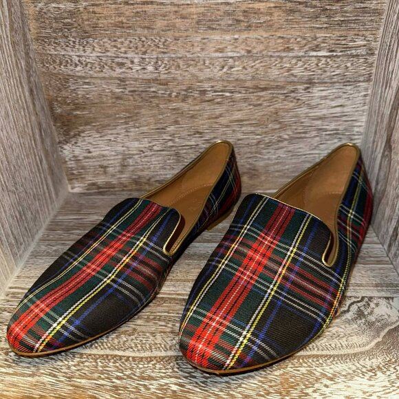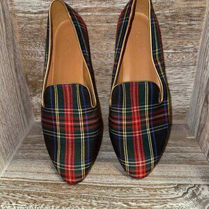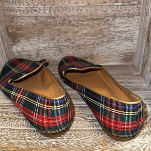 J. Crew Stewart Tartan Plaid Holiday Smoking Slippers Slip On Flat Loafers