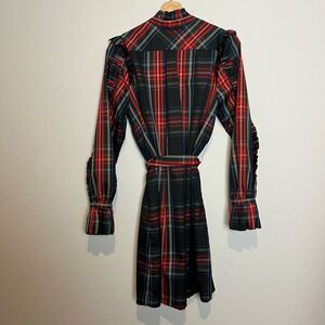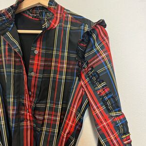 J. Crew Stewart Tartan Plaid Ruffle Neck Mini Shirt Dress Women's Size Small