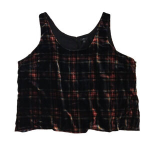 J Crew Stewart Tartan Plaid Velvet Tank Top Plus Size 24 Black Shell K2521