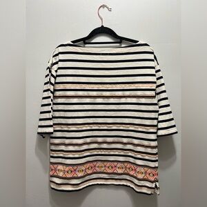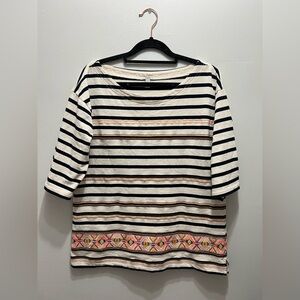 J. Crew Stitchwork Striped Embroidered Aztec Blouse Size Medium