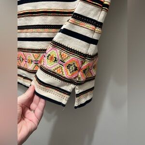 J. Crew Stitchwork Striped Embroidered Aztec Blouse Size Medium