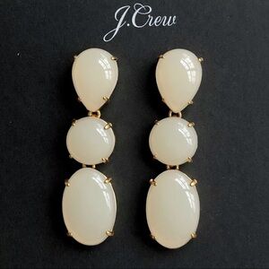 J. Crew Stone Drop Earrings with cream color stones and gold details. Unique, opaque different shaped stones make up these drop statement earrings. Gold-plated brass, epoxy stone and titanium post. Post back closure. Brand new with tags and dust bag. Approx. 2” long. Last picture to show what they look like on, not actual color.
