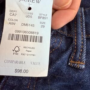J. Crew Straight Jean Dark Stretch Denim Size 29 Re-Imagine NWT Sustainable