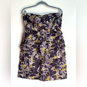 J. Crew Strapless Purple Yellow Tiered Cotton 100% Floral Sz 8 Wedding