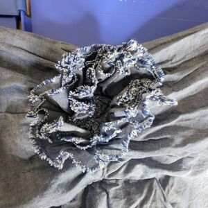 Blue, Ruffle, Feminine, Chambray, Strapless, Dress, Summer, Spring, Zipper, Silicone grip lined bodice, Adjustable Support Bust Band Strap, Lined, Applique, Flower, Rose, Rosette, Mini, Party, Wedding, Event, Night out, Date night, Formal