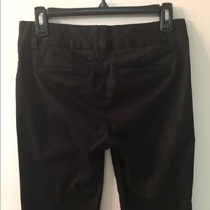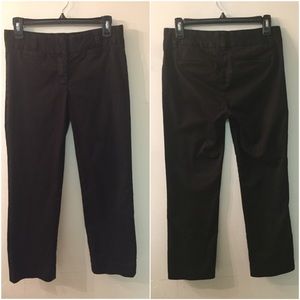Black J. Crew Stretch City Fit Pants. Size 0. Inseam 24". Ribbed waist band. Zipper Hook closures. Straight back pockets. Very very minimal fading. Excellent used condition.
