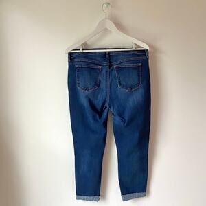 Soft and comfy cropped jeans by J. Crew with a raw edge folded hem. They're in excellent preowned condition. Size 32 (14) with a 25.5 inseam. Measurements included in photos.