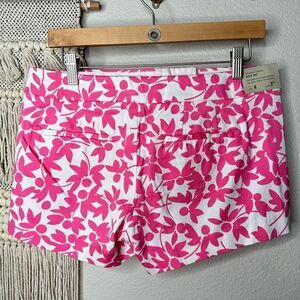 J. Crew Pink Floral Leaf Print Shorts size 4. Brand new with tags, no flaws. Stretchy. Side and rear pockets. 3” inseam. Stretch chino city fit.