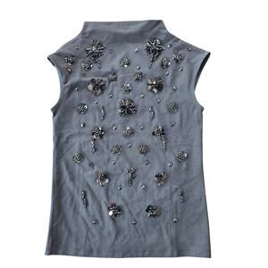 J. Crew Stretch Mockneck Top with Floral Embellishment Size XXS NWT