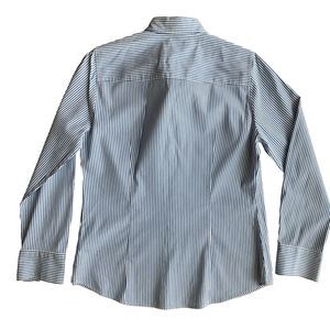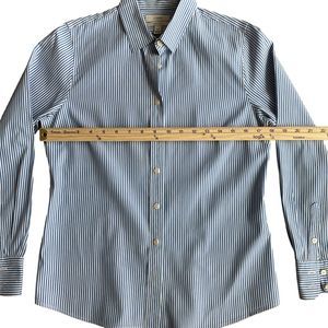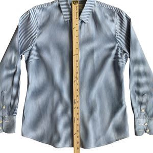 Brand: J. Crew. Model: Perfect stretch. Women's dress shirt, button up, long sleeve. Size: PM. Pattern: striped. Colors: blue, white. Fabric: 97% cotton, 3% spandex. Condition: like new, no flaws.
