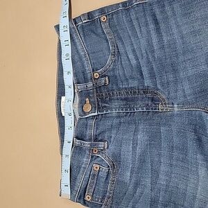 J Crew Stretch, Size 25, Skinny Blue Denim Jeans.  EUC.  No Holes, Rips, Snags or Stains.  No Pulling or Puckering at Crotch Area.  Classic 5 Pocket Styling with Zipper Fly and Button Closure.  J. Crew Item G7357.  Please refer to measurements in photos to ensure proper fit.