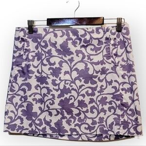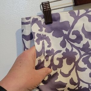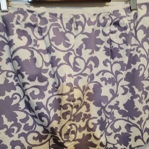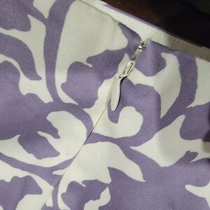 Light purple and creamy white printed skirt. Back zipper closure Two front. slip pockets.