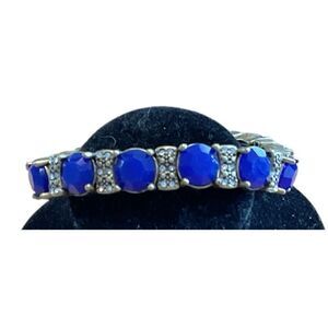 J. Crew Stretchy Silver Rhinestone and Blue Stones Bracelet