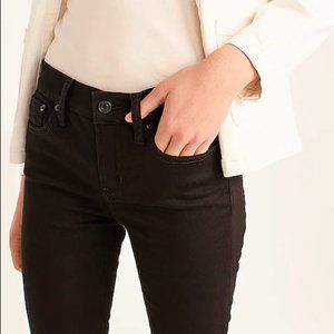 Your search for the perfect black jean ends here. J. Crew's skinniest style, the toothpick is lean, cropped and a little bit sexy—and it's the pair you're most likely to tear your closet apart looking for. These are superflattering thanks to stretchy XP denim and new Perfecting Pockets™ which hold you in, lift you up and are really comfortable too. Zipper fly with button closure and traditional 5-pocket styling. In excellent used condition 88% cotton 8% polyester 4% Lycra® spandex Approximate measurements laying flat 16 inches across the waist 9 1/2 inch rise 26 1/2 inch inseam