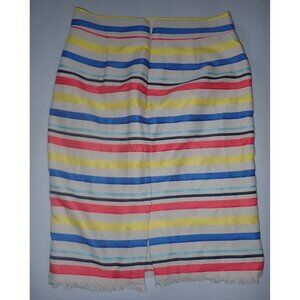 J. Crew Stripe Fringe Jacquard Pencil Skirt Women 10 Preppy Retro Festival