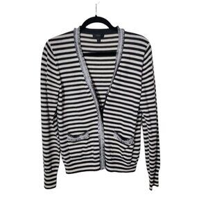 J Crew Stripe Harlow Cardigan Sweater 100 % Merino Wool Size M