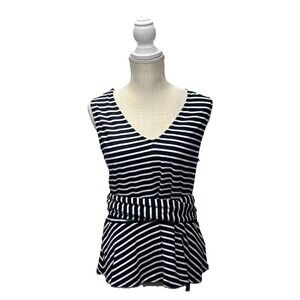 J Crew Stripe Peplum Tank Top Navy White Cotton Nautical Large H7755