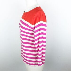 J. Crew Stripe Pink 3/4 Quarter Sleeve Blouse Top