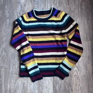 Cozy and colorful J.Crew sweater featuring bold multicolor stripes. This light weight wool sweater adds a fun pop of color to any outfit while keeping you warm and stylish.