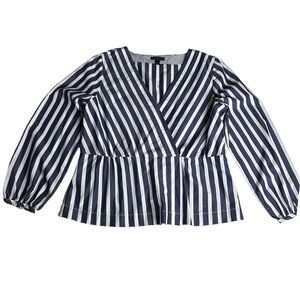 J Crew Stripe cotton poplin top with tie waist size 14