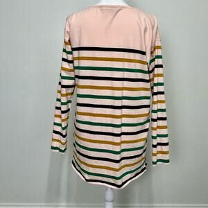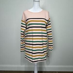 J Crew Striped Blouse Women XS Knit Tunic Stripe 100% Cotton Long Sleeve Top Tee