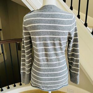 J Crew Cashmere Blend Crest and Strip Crew Neck Sweater