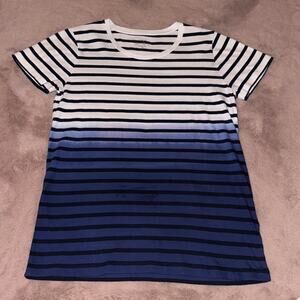 J Crew Striped Short Sleeve T-Shirt In Dip Dye Blue Ombré 100% Cotton