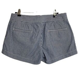 J. Crew Striped Cotton Shorts - Blue/White, Size 0. Cute and preppy, lightweight cotton, muted blue and white stripes. Belt loops, hidden zipper & hook closure. Two front pockets, 2 faux rear pockets.