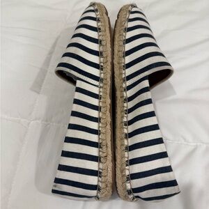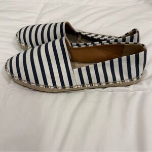 J. Crew Striped Espadrilles Flats Pull On White Blue Size 10 Coastal summer