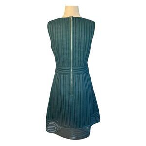 J. Crew Cocktail Dress in a Dark Teal Green Striped Eyelet Lace. It a Midi Fit & Flare style with a V-Neck, it is Sleeveless, has a Back Zipper Closure and it is Fully Lined. It is great for casual days at work, school, date night, night out with the girls, and Family Dinner. What a fun addition to your wardrobe!