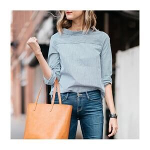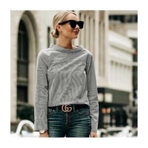 J. Crew Striped Funnelneck Top in Cotton Poplin