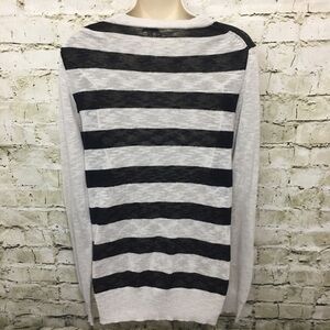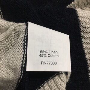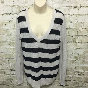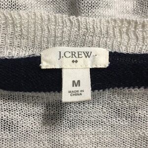 J Crew Women’s Navy Blue Striped Linen Blend Thin Knit v Neck Sweater Size Medium in good used condition. No stains, tears or rips.