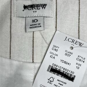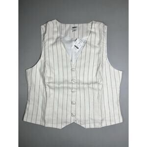 J Crew Striped Linen Blend Vest Womens 10 Ivory Camel Tailored Button V Neck