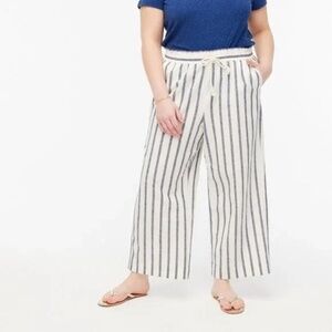 J. Crew Striped Linen-Cotton Wide-Leg Paper-Bag Pant 20859