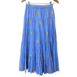 J Crew Striped Midi Skirt Blue Womens Size XS Pineapple Embroidered Lined