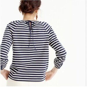 The J. Crew Striped Peasant Navy Blue White Top in size S is a classic and preppy piece perfect for a nautical or coastal look. Made from 100% cotton, this blouse features long sleeves, a round neck, and a tie closure. The lightweight material makes it suitable for all seasons, while the blue and white striped pattern adds a touch of sophistication. Ideal for occasions ranging from casual to workwear, this top is versatile and easy to style for a variety of different outfits. Perfect for women who appreciate a timeless and chic aesthetic.
