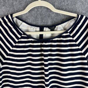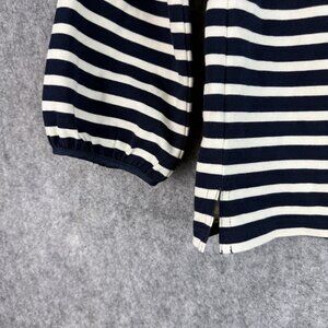 J. Crew Striped Peasant Navy Blue White Top Size S Preppy Nautical Coastal