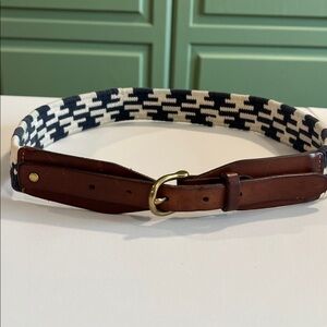 J Crew Striped Red and Pink Belt with Faux Bamboo Buckle