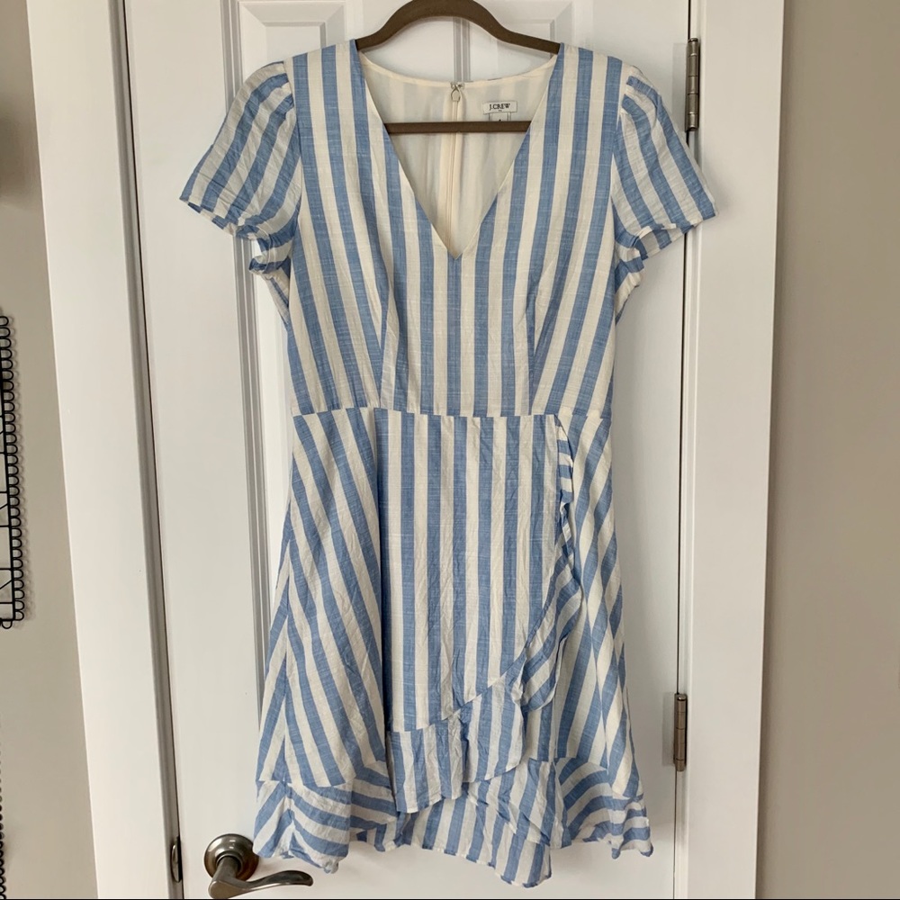 J. Crew blue and white striped ruffle wrap dress. Great condition, adorable for spring