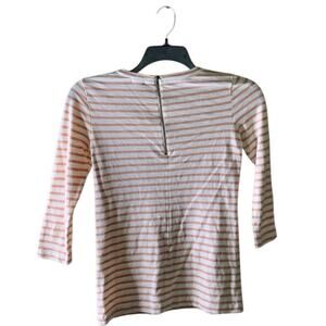 J Crew Striped Top Womens XXS 3/4 Sleeve Rhinestone Back Zip Casual Pullover