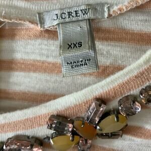 J Crew Striped Top Womens XXS 3/4 Sleeve Crewneck Rhinestone Back Zip Pullover