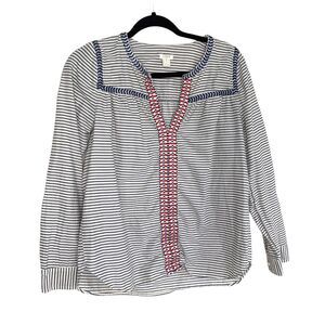 J Crew Striped Tribal Embroidered Peasant Boho Blouse Top Size Small 3/4 Sleeve